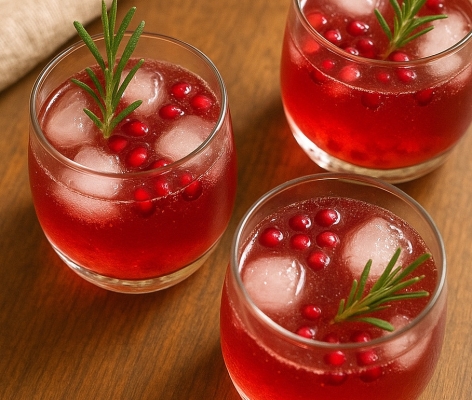 3. Garnish with rosemary + a few pomegranate seeds that float like ornaments.