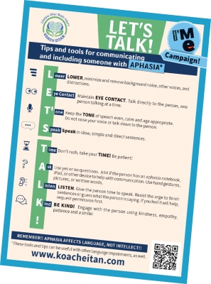 Because aphasia is not widely known about, people don't understand how to communicate with someone living with it. This silence can turn into isolation. So, we teach—in schools, shuls, seminaries, yeshivas, hospitals, and communities. We have created innovative tools like our "Let's Talk" guide to how to communicate with somebody with aphasia and like our Halachic Guide to Aphasia and Brain Injury. These tools are being used by thousands of families in Israel and abroad.