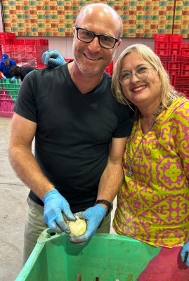 "Much of the produce that is left behind or falls off trees and isn't picked in time for the morning markets usually ends up here," she explained. "Many Leket volunteers will also be bused around the country to farms where they help us pick the fruit and vegetables to bring to the distribution points." I later found out that my neighbors, who own a vacation apartment next to me, had just spent a day with Leket picking peppers on kibbutz Karmia on the border with Gaza.