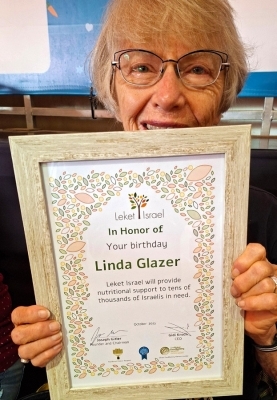 Linda was presented with a Leket certificate to celebrate her day to remember and she even managed to get her birthday cake later that day.